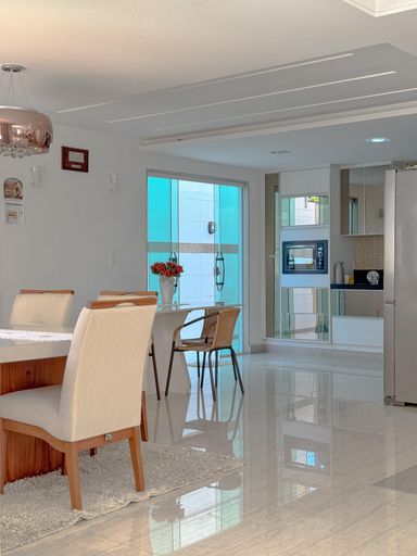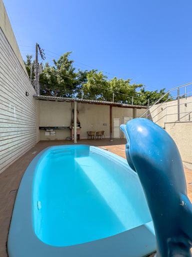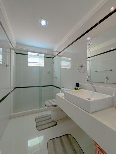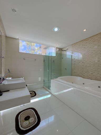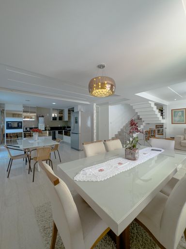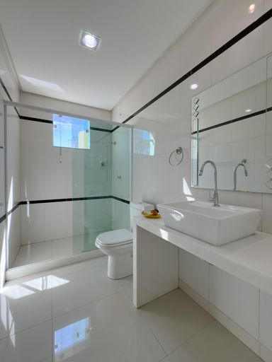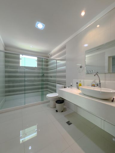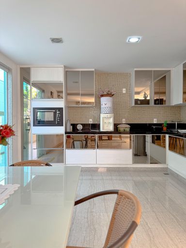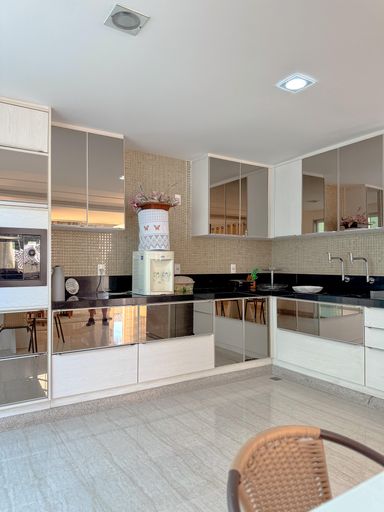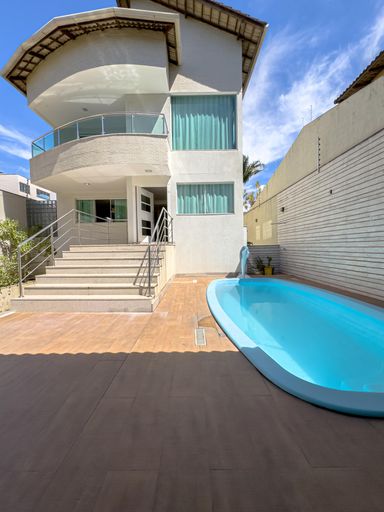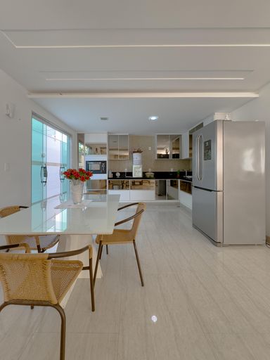 A casa conta com cozinha ampla e montada, além de 6 banheiros, atendendo perfeitamente famílias grandes.